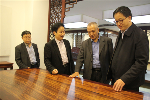 4月12日上午,中國(guó)木材與木制品流通協(xié)會(huì)會(huì)長(zhǎng)劉能文,副會(huì)長(zhǎng)兼秘書長(zhǎng)李佳峰一行蒞臨匯才紅木考察蘇作明清家具制作技藝及紅木文化內(nèi)涵。