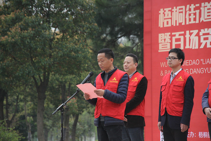 4月1日,梧桐街道“兩新組織”公益行動進(jìn)基層暨百場黨員志愿服務(wù)啟動儀式在城新小區(qū)廣場舉行,桐鄉(xiāng)市委組織部部務(wù)會議成員、干部科科長蘇偉強(qiáng),梧桐街道黨委副書記、政法委書記孫春祥,街道黨委委員、辦事處副主任沈建峰,街道黨委委員朱力佳、張緒江出席啟動儀式。街道下屬各村、社區(qū)、機(jī)關(guān)直屬、學(xué)校和兩新黨組織的黨員志愿者代表參加活動。匯才紅木黨支部書記徐富根帶領(lǐng)黨員代表參加活動。