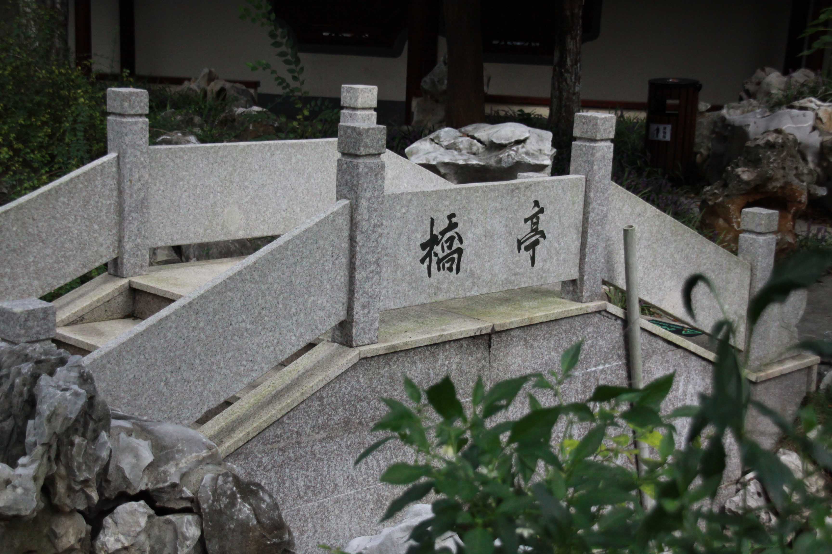 東園長(zhǎng)廊北,大樟樹(shù)下有六角形攢尖頂“聚芳亭”,亭名為省書(shū)協(xié)理事、桐鄉(xiāng)市書(shū)協(xié)主席傅林林所書(shū),亭內(nèi)中有石桌石凳,兩邊美人靠椅,此處“佳趣涓涓同水聚,好風(fēng)馥馥伴花芳”,樹(shù)木蔥翠,溪水繞曲,是歡聚同樂(lè)之處。
