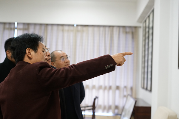 1月16日,嘉興市委常委、副市長鮑九生等蒞臨匯才紅木調(diào)研指導(dǎo)。桐鄉(xiāng)市副市長戚鴻峰等陪同調(diào)研。匯才紅木董事長潘福初接待并陪同。
